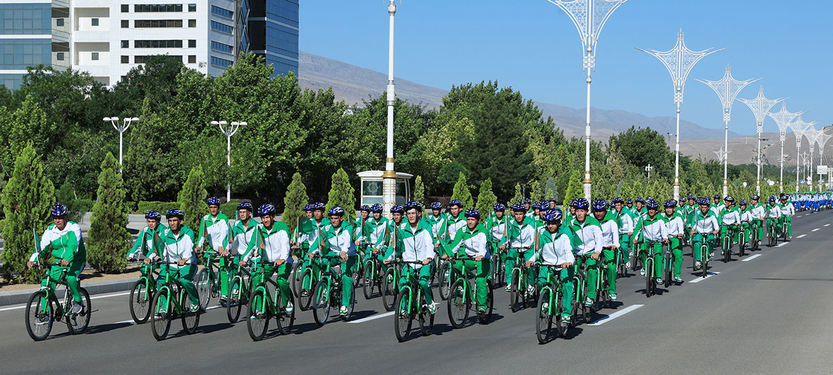 Türkmenistanyň Prezidenti köpçülikleýin welosipedli ýörişe gatnaşdy