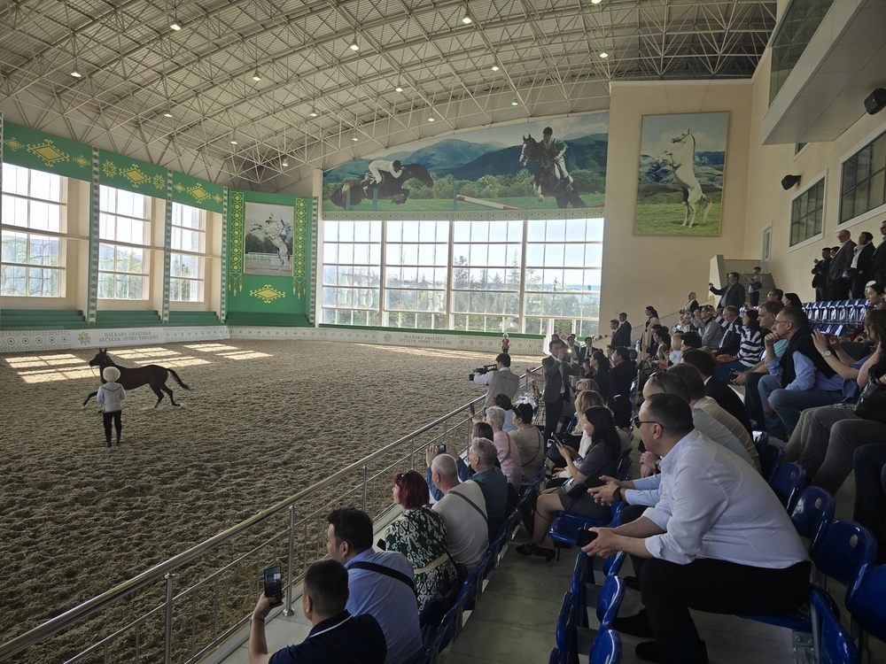 Участники конференции ОСЖД в Туркменистане оценили красоту ахалтекинских скакунов