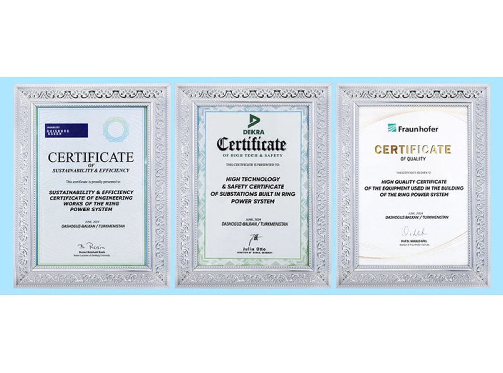 Сразу три Сертификата подтвердили высокое качество оборудования и работ по сооружению единой кольцевой энергосистемы страны